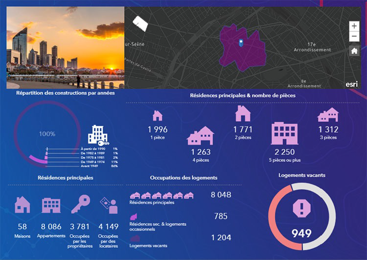 ArcGIS Online et son application Business Analyst Online vous permettent de réaliser de magnifiques infographies exploitables dans des applications Web, telle Web AppBuilder ou Experience Builder, et dans l’application bureautique ArcGIS Pro.
